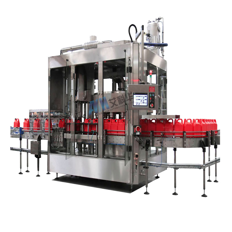 自動排桶——自動灌裝———自動旋蓋——自動噴碼(貼標)——輸送——重量復檢——剔除